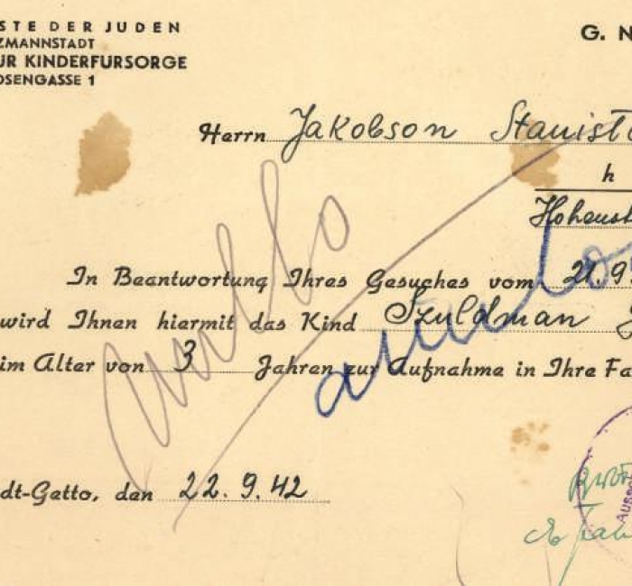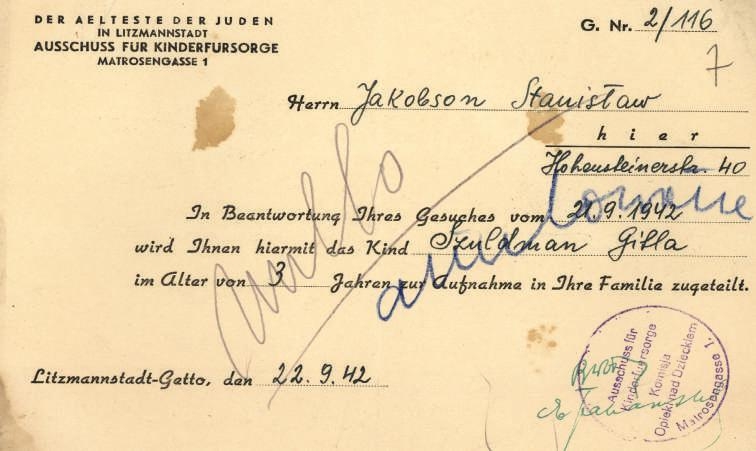 Zachował się list kierowany do Komisji Opieki nad Dziećmi, najprawdopodobniej napisany przez osobę z nią związaną z 20 września 1042 r., wyrażający obawy co do słuszności apelu Rumkowskiego do rodzin o zaopiekowanie się osamotnionymi dziećmi.
