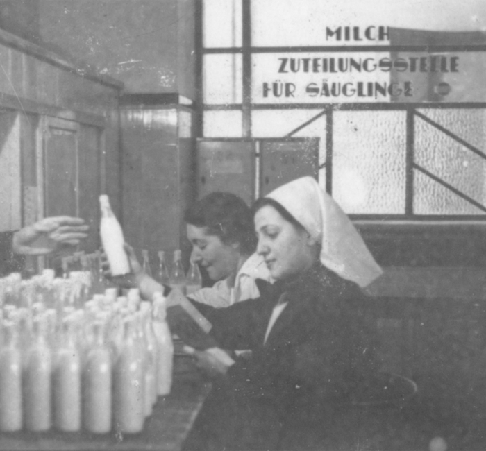Dostawy i obecność w przydziałach nabiału były niewystarczające i nieregularne, a produkty nabiałowe postrzegano i dystrybuowano jako lekarstwo, np. na gruźlicę, odmę czy dla dzieci do lat 3 (vide Karty mleczne). Nabiał rozprowadzany był do 15–17 sklepów specjalnych i 40 mieszanych, chlebowo-nabiało- wych. Wytwarzali go i dystrybuowali pracownicy Wydziału Nabiałowego (vide).