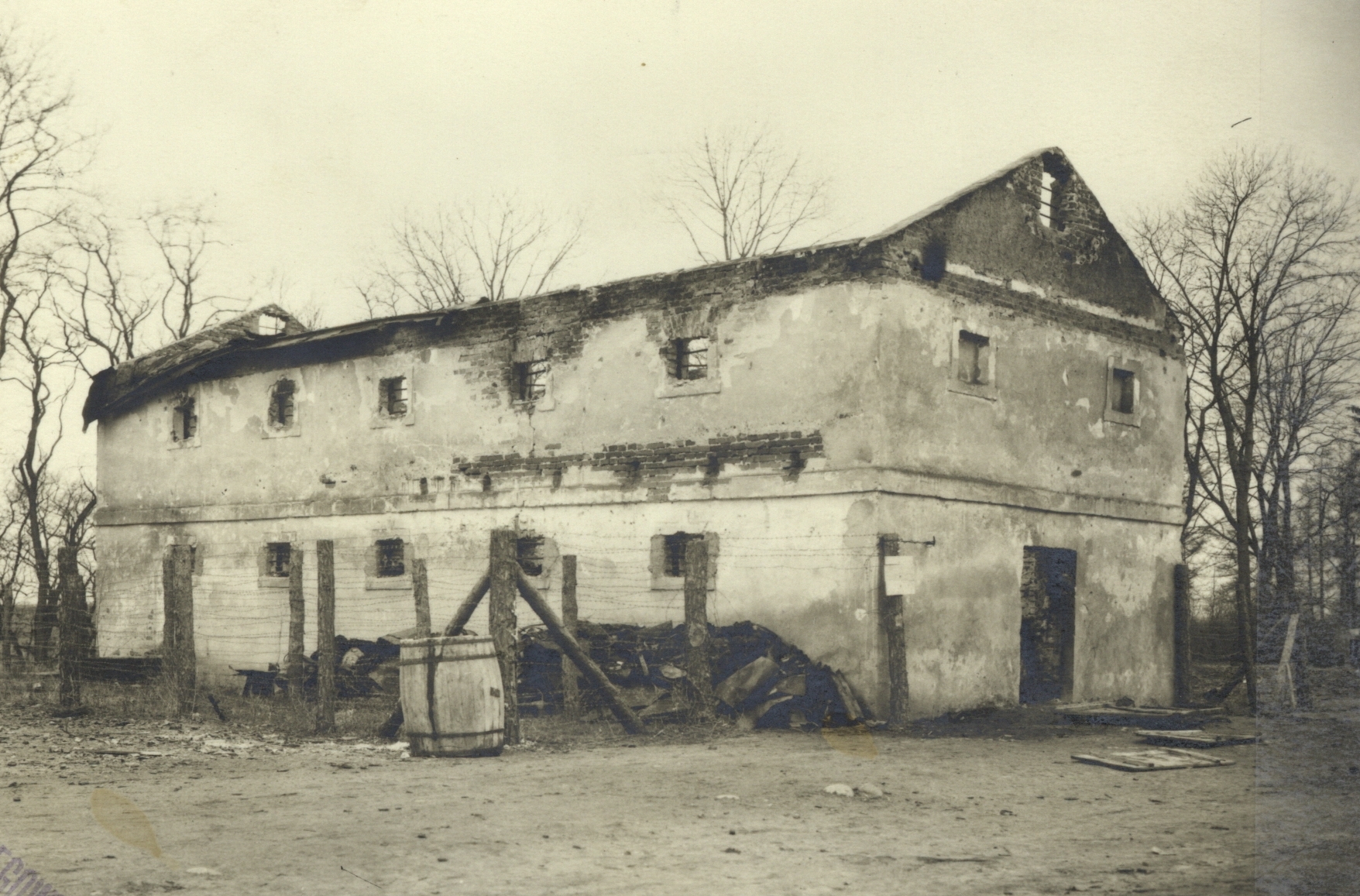 Przejęto także część zabudowań na terenie wsi, m.in. budynek lokalnych władz gminnych, w którym kwaterował komendant obozu, plebanię, służącą jako budynek administracji obozowej (gdzie przechowywano odebrane ofiarom kosztowności), a w 1944 r. kościół parafialny, zamieniony na magazyn ubrań i tymczasowe miejsce koncentracji przyszłych ofiar. Członkowie oddziału zostali zakwaterowani w kilku zarekwirowanych domach polskich mieszkańców. Rolę koszar dla funkcjonariuszy Policji Ochronnej odgrywały remiza ochotniczej straży pożarnej oraz wzniesione w pobliżu baraki.