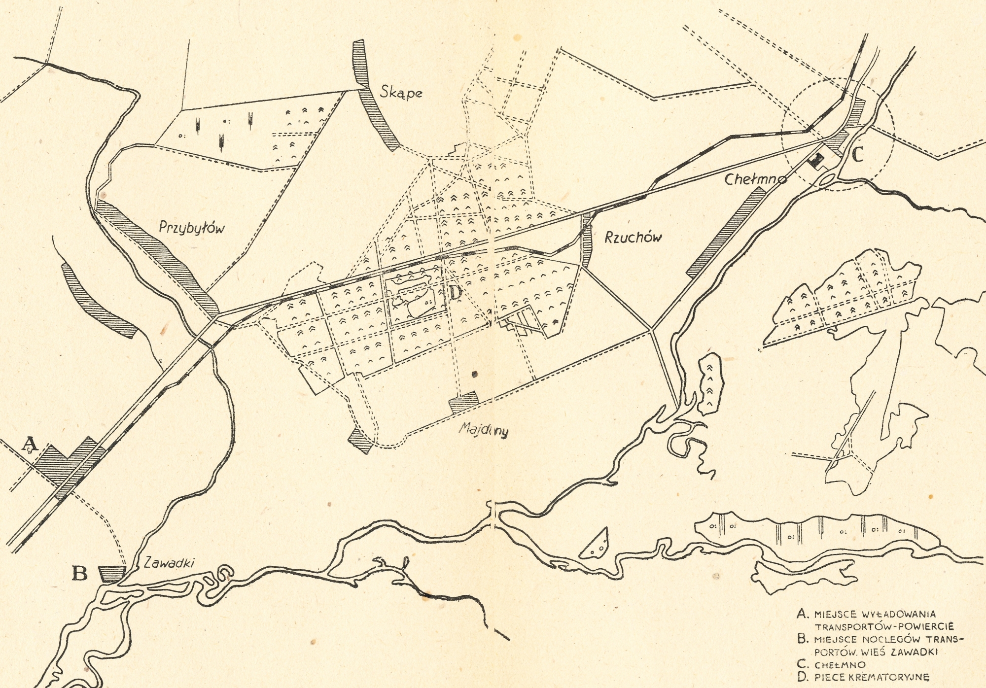 Ze względu na wysadzenie pałacu eksterminacji dokonywano bezpośrednio w obrębie lasu rzuchowskiego, gdzie zbudowano dwa krematoria i dwa baraki, przystosowując je do przyjmowania ofiar. Pierwszy z nich służył jako przebieralnia, w drugim wybrana grupa więźniów była zmuszana do pisania fikcyjnych „kart pocztowych z Lipska” (vide Fałszywe informacje), przesyłanych następnie do bliskich pozostających w getcie łódzkim. Mistyfikacja ta miała uspokoić tamte osoby, obawiające się o prawdziwy cel wysiedleń.