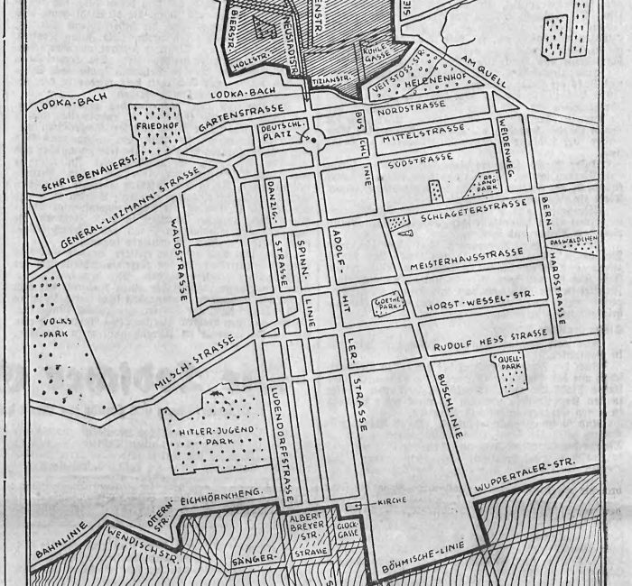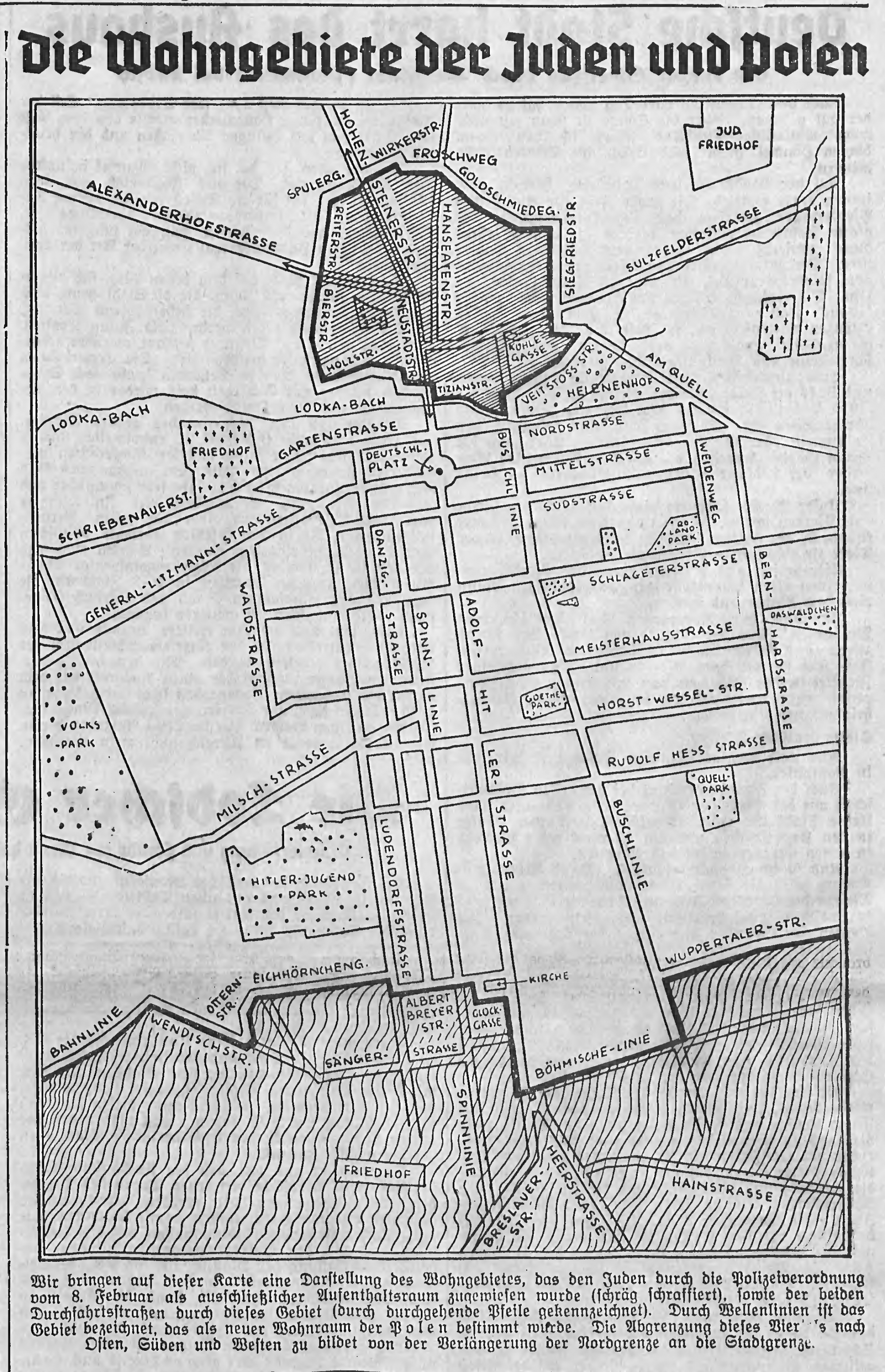 Prawdopodobnie w celu precyzyjnego określenia obszaru przeznaczonego na „dzielnicę zamieszkania dla Żydów” w numerze 42/43 „Lodscher Zeitung” z 11 lutego 1940 r. opublikowano mapę, na której opisano graniczne ulice, a także pokazano teren „dzielnicy zamieszkania dla Polaków”, do którego planowano przesiedlić Polaków ze Starego Miasta.