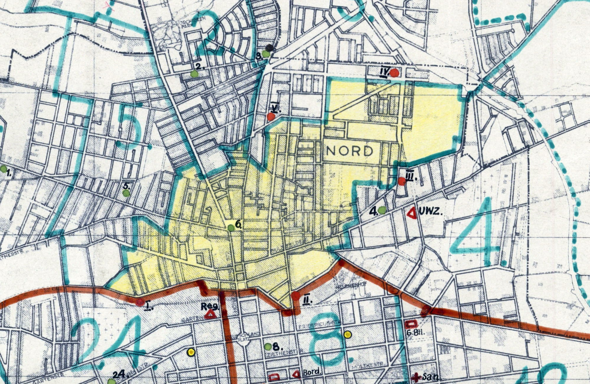 W celu zapewnienia kontroli wokół granic getta na stałe rozmieszczono w kilkudziesięciu wartowniach 66 funkcjonariuszy, których od zmierzchu do świtu wspomagała dodatkowa 10-osobowa załoga. Policjantów z VI Rewiru przy wykonywaniu zadań wartowniczych wspierały dodatkowe siły: od 28 listopada 1940 do 31 marca 1941 r. policjaci ze 101. Batalionu Policji z Hamburga, Batalionu Policji Pomocniczej liczącego 240 funkcjonariuszy oraz w razie potrzeby członkowie Totenkopfverbände SS. Dodatkowe wsparcie zapewniali oficerowie z graniczących z gettem rewirów policyjnych: II, III, IV, V, VIII, XXIV. 7 kwietnia 1941 r. 101. Batalion Policji został odwołany do Hamburga, a jego miejsce zajął Policyjny Batalion Rezerwowy-Getto w sile 5 kompanii liczących w sumie 400–600 funkcjonariuszy. Kompanie stacjonowały w wartowniach rozmieszczonych wokół getta: na ul. Drewnowskiej przy Oficerskiej, Franciszkańskiej przy Smugowej, Przemysłowej, Inflanckiej przy Jagiellońskiej oraz Rymarskiej.